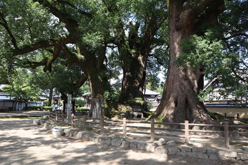 広大な「大本山」の境内で目立つのは、2本のクスの巨木。樹齢800年とされ、聖光が自ら植えたものだと伝わる。また筑紫箏曲の発祥地で、その記念碑もある。一方、「博多」は、交易で栄えた中世博多の町の一角にある寺院らしく、境内には1358年の銘がある「蒙古碇石」や南宋時代の「十王図」を所蔵する。