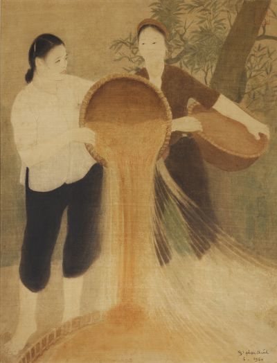グエン・ファン・チャンは、1920年代の近代初頭から登場し、1970年代激化するベトナム戦争の真っただ中まで活動した画家の一人でした。画業が安定しないなか描き続けた作品や、アメリカからの北爆の最中防空壕の中で描き続けたという作品などが多く残っています。直接的に凄惨で暴力的な描写はなく、あくまでもひたむきにたくましく生きる女性や子どもなど、身近な人々をみつめつづけた作品です。