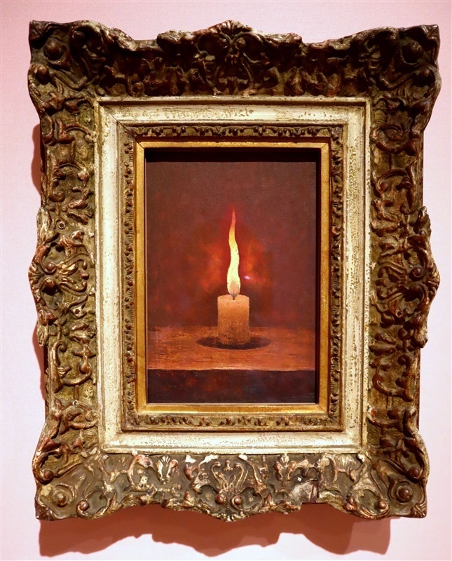 野十郎の代名詞でもある「蝋燭(ろうそく)」シリーズは、いずれも個展では発表されず親交を持った人々へ手渡された贈り物だ。「代を超えても多くの方々が大切に持ち続けていることからも、野十郎の交友関係の豊かさがうかがえる」(高山さん)。野十郎は自画像や依頼された肖像以外はほとんど人物を描かなかった。炎の大きさやロウの形は一つ一つ異なり、それぞれの人物の肖像のようにも思える。
