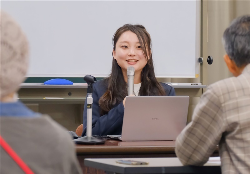 市民講座でエジプト史について語る野中亜紀さん=福岡市南区の福岡女学院大