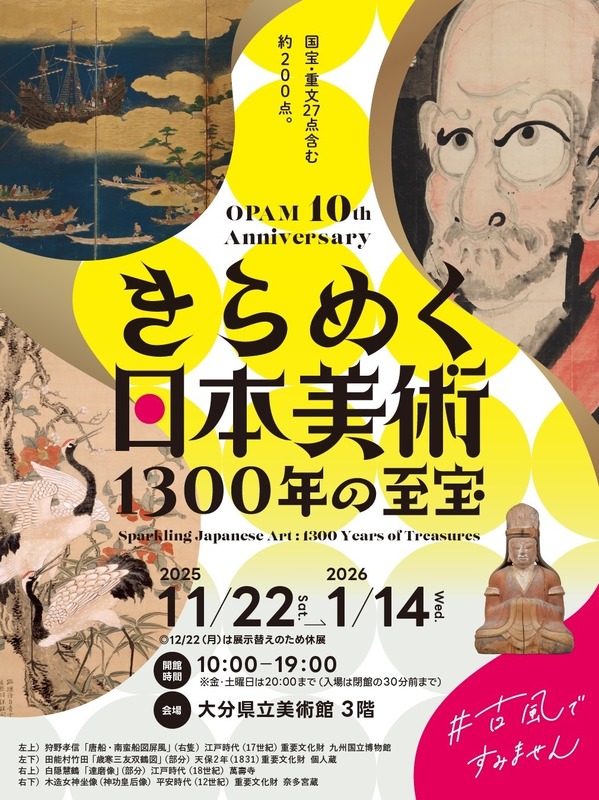 大分県立美術館(OPAM)では、開館10周年を記念し、「きらめく日本美術 1300年の至宝展」を11月22日(土)から開催します。
