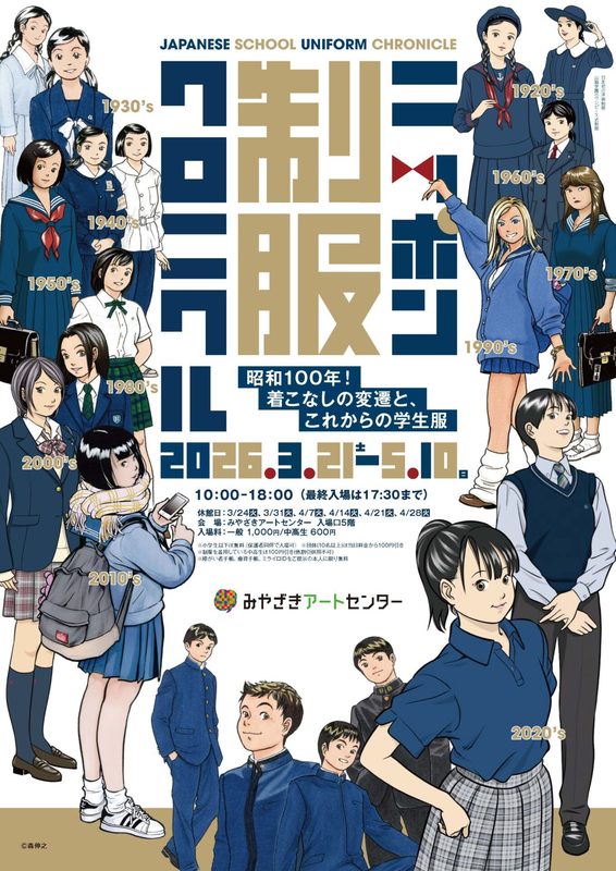 明治時代に欧米から日本にもたらされた学生服。大正・昭和・平成・令和と受け継がれ、青春の象徴として愛され続けてきました。本展では和装から〈詰襟〉や〈セーラー服〉に切り替わった経緯や、洋装制服の定着後も時代時代で変化し続けた日本の学生服100年の歩みを紹介します。