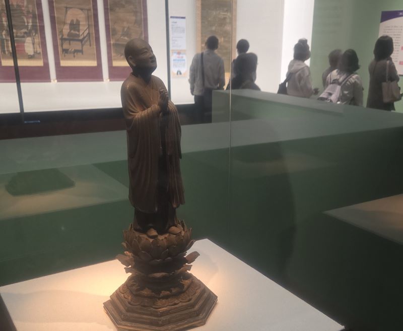 また、福岡市の善導寺も聖光上人によって建立されたお寺です。同寺に安置されている「善導大師立像」は聖光上人が善導大師が博多に着く夢を見たので実際に博多箱崎津の海に行ってみたら松原の樹下に流れ着いていたという逸話が残されています。その善導大師立像も本展に展示されています。