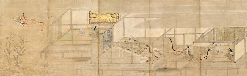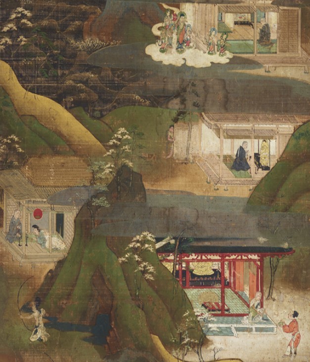 また、ある尼僧(実は阿弥陀様)から蓮糸を多量に準備するようにと言われた姫が、実際に蓮の糸を準備したら観音様の化身である女性が現れて曼荼羅を織り上げたという「綴織當麻曼荼羅」にまつわる伝説をもとに描かれた「当麻曼荼羅縁起絵巻」も必見です(後期は下巻)。
