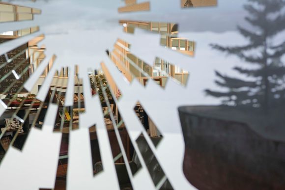 鏡に周囲の風景が写り込み、見る角度によって様々な表情をみせる