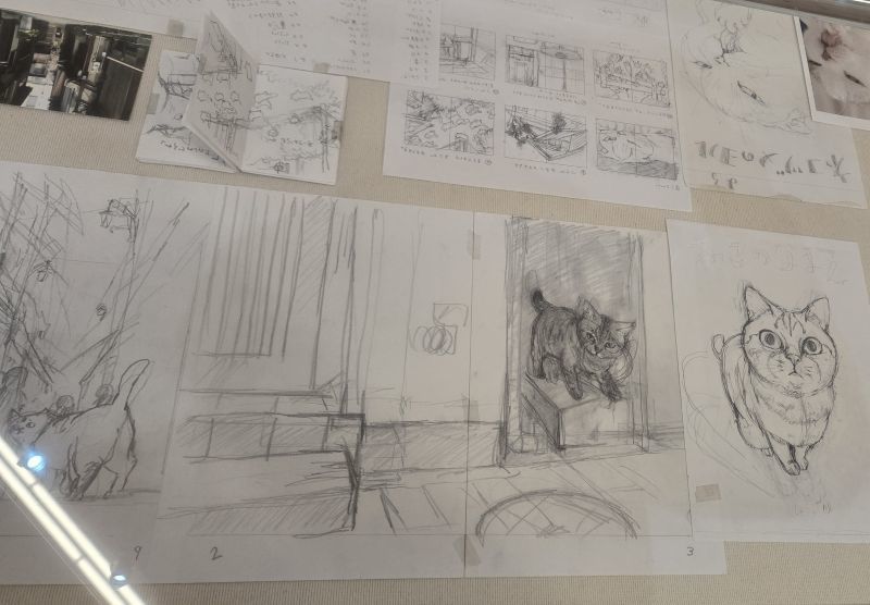 また、貴重なラフなどの制作資料も会場に展示されています。