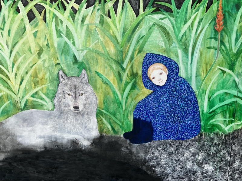 建物の中からも外からも見ることができ、見る時間によっても表情を変えるという田中千智氏の《生きている壁画》。大画面だからこそぜひ間近でそのスケールやディティールを楽しんでみてください。
