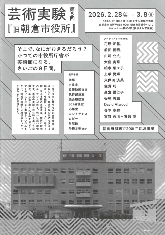 日程:2026/02/28(土) 〜 2026/03/08(日) 会場:旧朝倉市役所