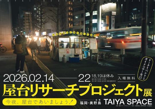 まちの日常に溶け込んでいる「屋台」について、多角的に実地調査を行い、今日の社会における公共空間のあり方を探求する、活動集団「屋台リサーチプロジェクト」の展示発表が、2月14日(土)、福岡博多区美野島のTAIYA SPACEで開催されます。