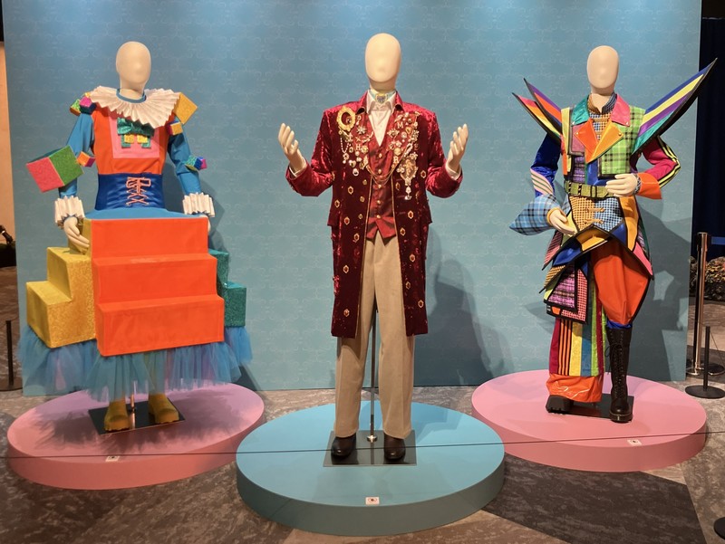 Mrs. GREEN APPLEが実際にミュージックビデオ撮影やステージで着用した衣装や小道具が展示される「COSTUME RUNWAY」。写真は「クスシキ」のもの。展示されている楽器は福岡展初公開になる。また最新曲「lulu.」で実際に使用した衣装も展示されているので、ぜひチェックしてみてほしい。