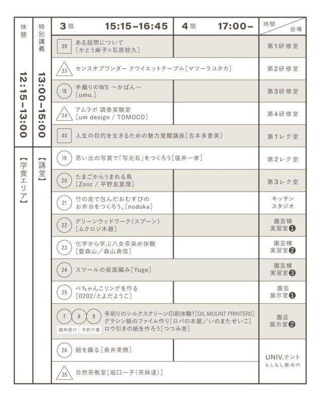 講座の多くは、事前予約制(一部、当日受付のものも有)。講座によって、抽選制と事前予約制(先着順)の2種類のお申込み方法があります。詳細は公式HP、または公式Instagramを確認、申込の上、会場を訪れてみてください。