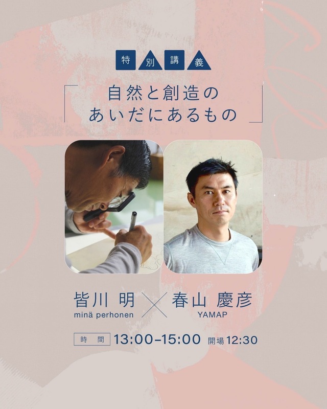 「minä perhonen(ミナ ペルホネン)」の創業者であり、ファッションデザイナーの皆川明氏と、日本最大級の登山・アウトドア用GPS地図アプリ「YAMAP(ヤマップ)」の代表取締役CEO春山 慶彦氏が、「自然と創造のあいだにあるもの」をテーマに語らう特別授業も必見です。