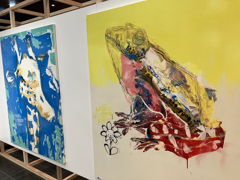 日本で最も変化の激しい街、福岡・天神の街から様々な文化を発信する拠点として昨年オープンしたONE FUKUOKA BLDG.(以下:ワンビル)。その開放的なロビーを舞台に、画家・北村直登(きたむら・なおと)の展覧会「画家という生業」が4月24日(金)から始まった。