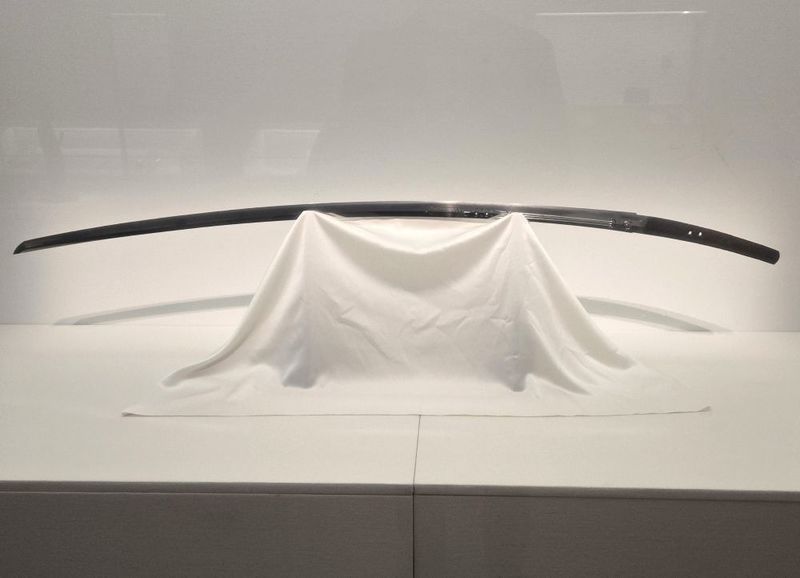 鎌倉時代の豊後国守護の大友氏が柞原八幡宮に寄進した「太刀 銘 源国□」。刃長が1メートルを超える長大な太刀です。