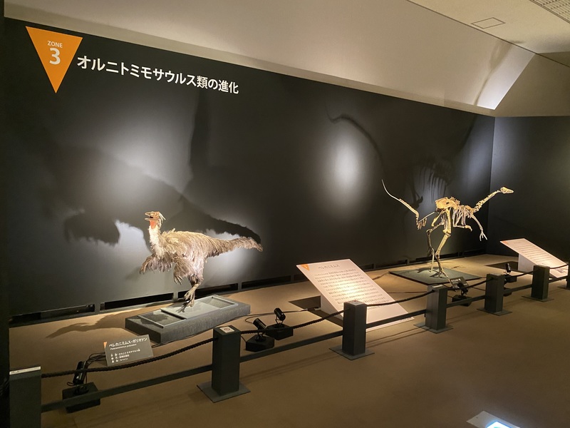 「フクイラプトルはどこから来たのか?」をテーマにしたメガラプトル類の進化・繁栄の過程、フクイベナートルの子孫の可能性が示されたテリジノサウルス類の特異な進化の過程など、展示を通して各類の進化史を知ることができます。