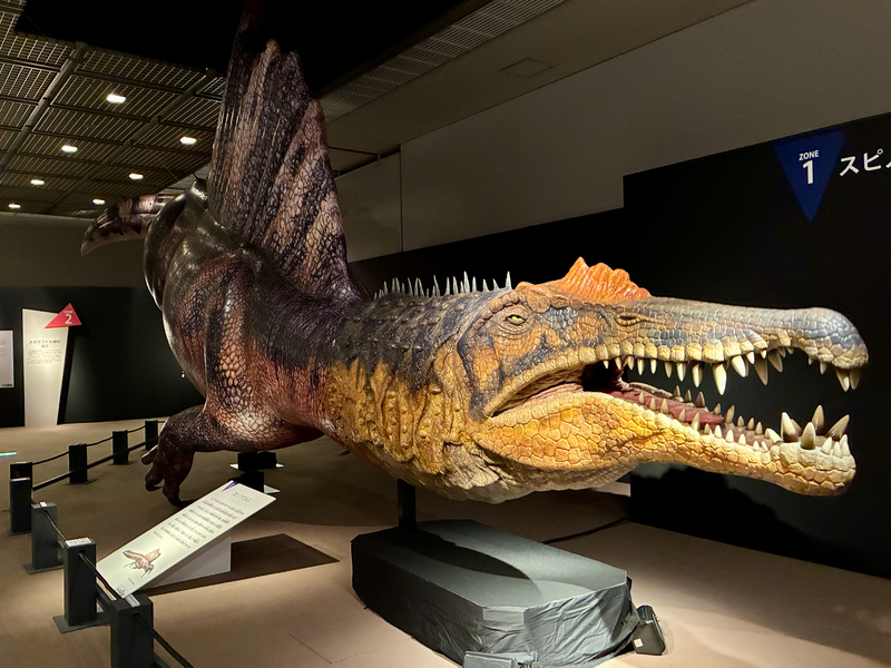 なんと言っても目を引いたのは、全長約15メートルにおよぶ巨大なスピノサウルスロボット。まるで恐竜が生きているかのように目や口、首がリアルに動く姿と、そのスケールは必見です。